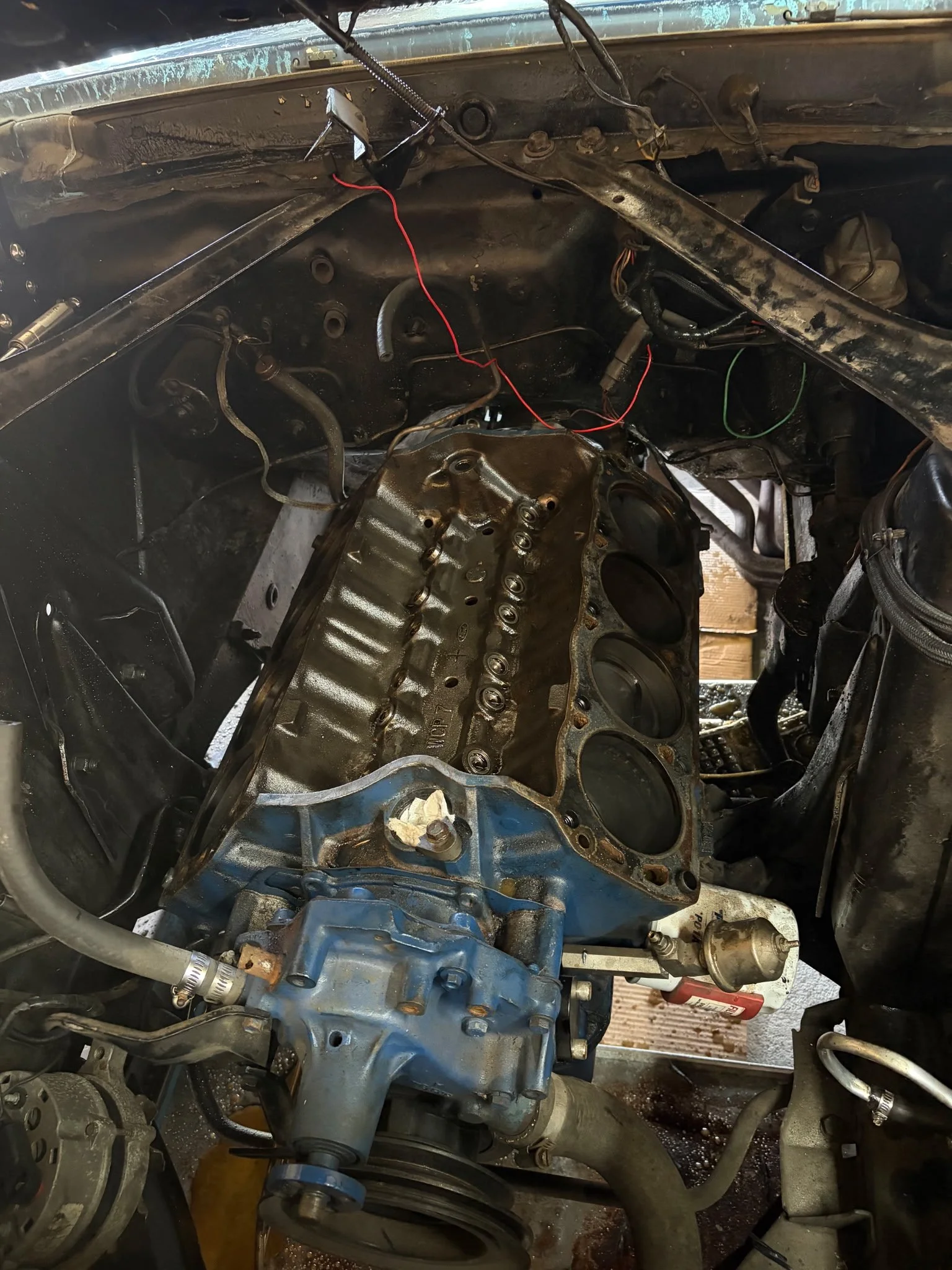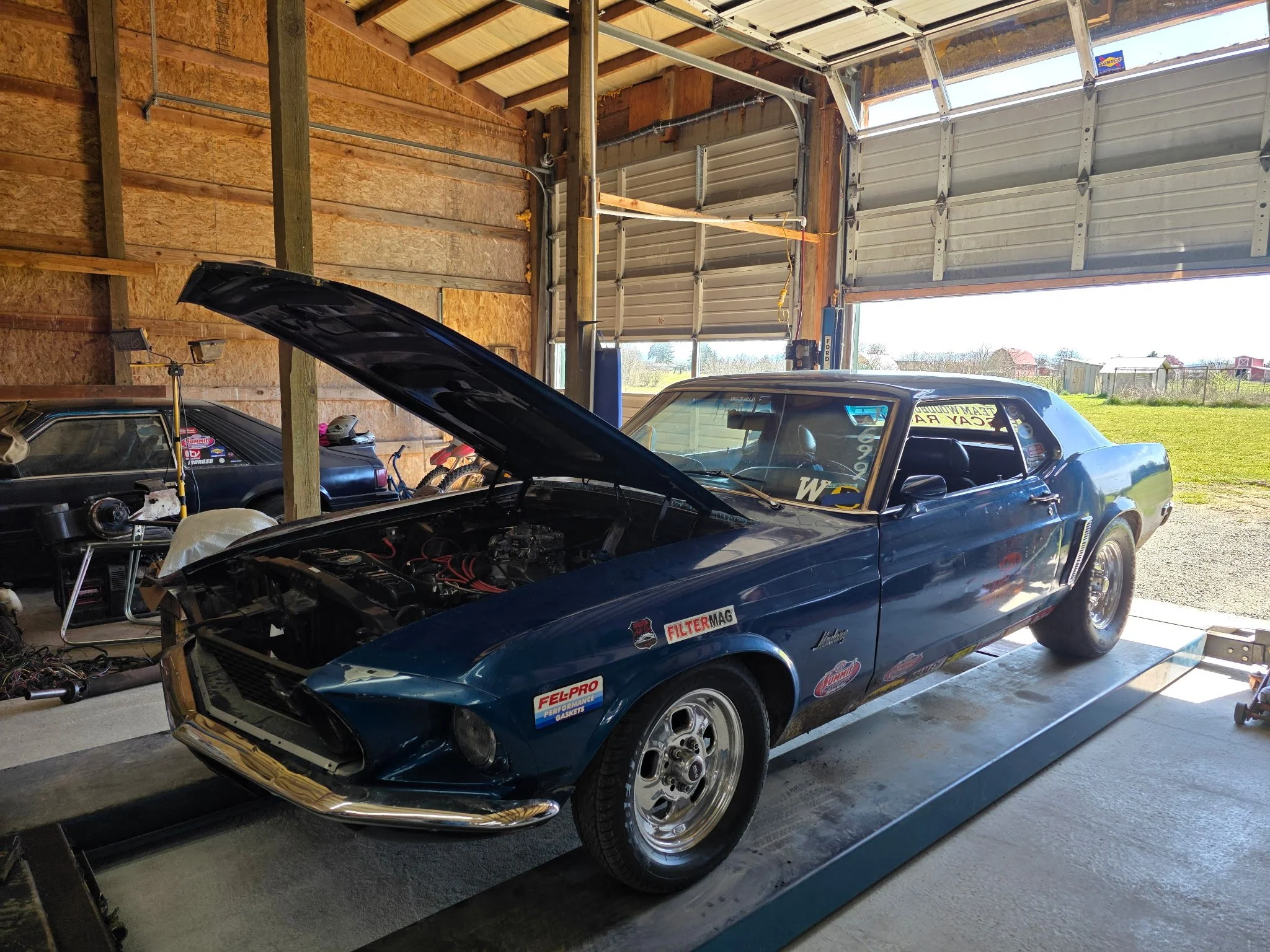 Due to my recovery from brain surgery and ongoing trigeminal neuralgia, I haven’t been able to physically work on the car the way I normally would. So the Mustang was moved to my brother-in-law’s shop, where he stepped in to help carry the build forward.