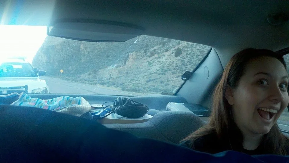 I explained about the kamikaze turkey vulture and that we were trying to make it to Salt Lake to get it fixed. He told me to call a tow truck—so I explained the whole “no cell service” issue. He finally let us go, advising us to drive “a short way” until we found signal. At this point we were still four hours from Salt Lake.